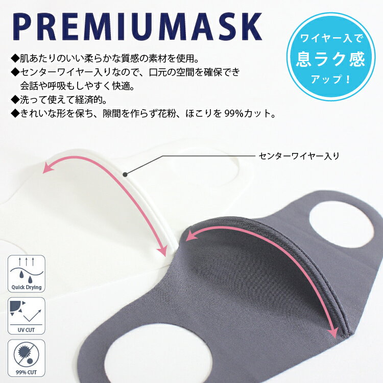 プレミアムマスク ドームマスク センターワイヤー ノーズワイヤー ドーム 立体 UVカット 速乾 洗える 快適 息がしやすい 会話がしやすい 息ラク 空間 伸縮性 柔らかい 男女兼用 大人 風邪 予防 痛くない セット ブラック ホワイト ベージュ ギフト 贈り物 プレゼント 春 夏 秋 冬 ●平置き採寸サイズ/約cm 幅/高さ(中心部分)・耳掛け部分(タテ・ヨコ) 31cm/13.5cm・5cm/6.5cm ※縫製・生地の関係上、サイズに個体差が生じる場合がございます。