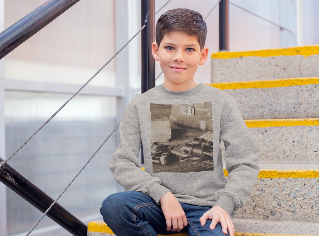 トレーナー キッズ 子供 長袖 ホワイト グレー ブラック デザイン 110 130 150 sweatshirt trainer 白 黒 灰色 裏パイル スウェット スエット 008823 写真 カメラ カバン アンティーク