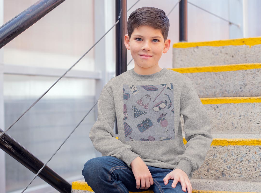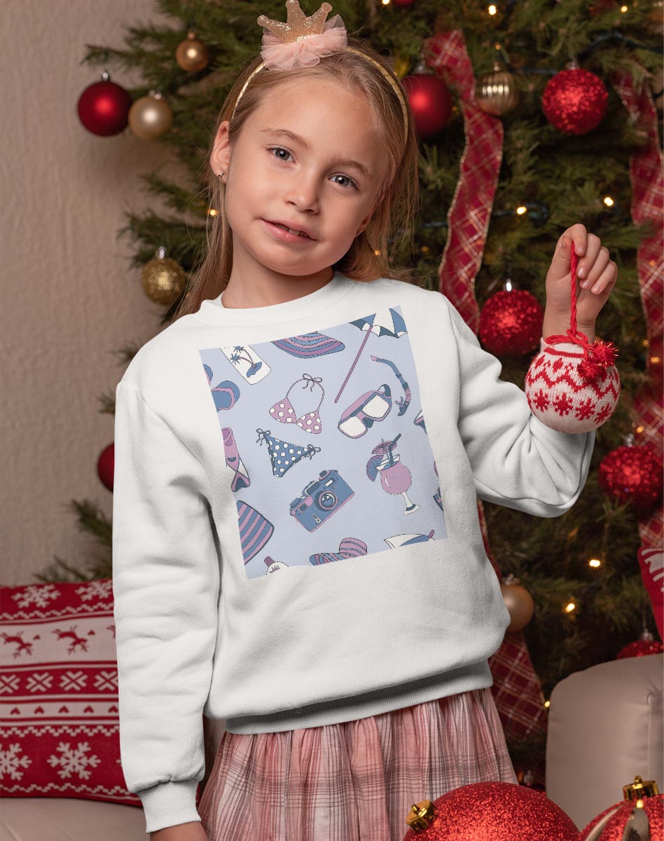 トレーナー キッズ 子供 長袖 ホワイト グレー ブラック デザイン 110 130 150 sweatshirt trainer 白 黒 灰色 裏パイル スウェット スエット 011317 海 水着 カメラ