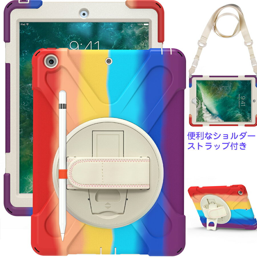 新型 iPad ケース iPad mini4 ショルダーストラップ付き ipad10.9 Air4 iPad 9.7 2017/2018 オートスリープ機能付き タブレット iPad mini5 ペンシル収納 iPad8 10.2 2020/2019 360度回転の折り畳スタンド 耐衝撃 軽量 可愛い ペンシル別売り