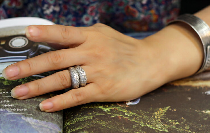 당초문양 쌍가락지 소재; ALL SILVER 전통의 당초문양 그리고 국화꽃 조각후 엔틱 유화처리 전체적인 볼륨감을 줄여 착용감이 좋게한 상품 素材*純銀 韓国伝統の菊花(국화/クックヮ)模様を彫刻した後に アンティークないぶし処理を施しました。