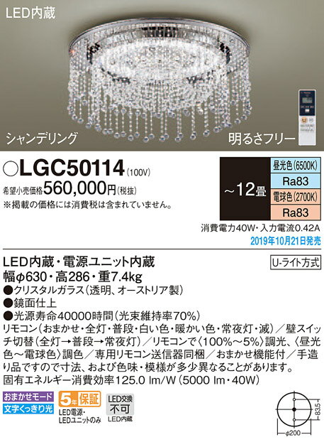 カテゴリ:照明器具 住宅照明 シーリングライト メーカー:Panasonic パナソニック 型番:lgc50114 ◎照明関連 【おすすめ Fケーブル】 (※適合に関しては事前にご確認ください) VVF1.6x2C VVF2.0x2C VVF1.6x3C VVF2.0x3C